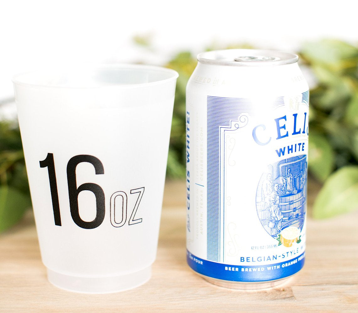 Our cups are measured to the brim with a flat liquid. This does not account for foam or bubbles! For example, the 16oz cups will hold a standard 12oz carbonated beverage perfectly.