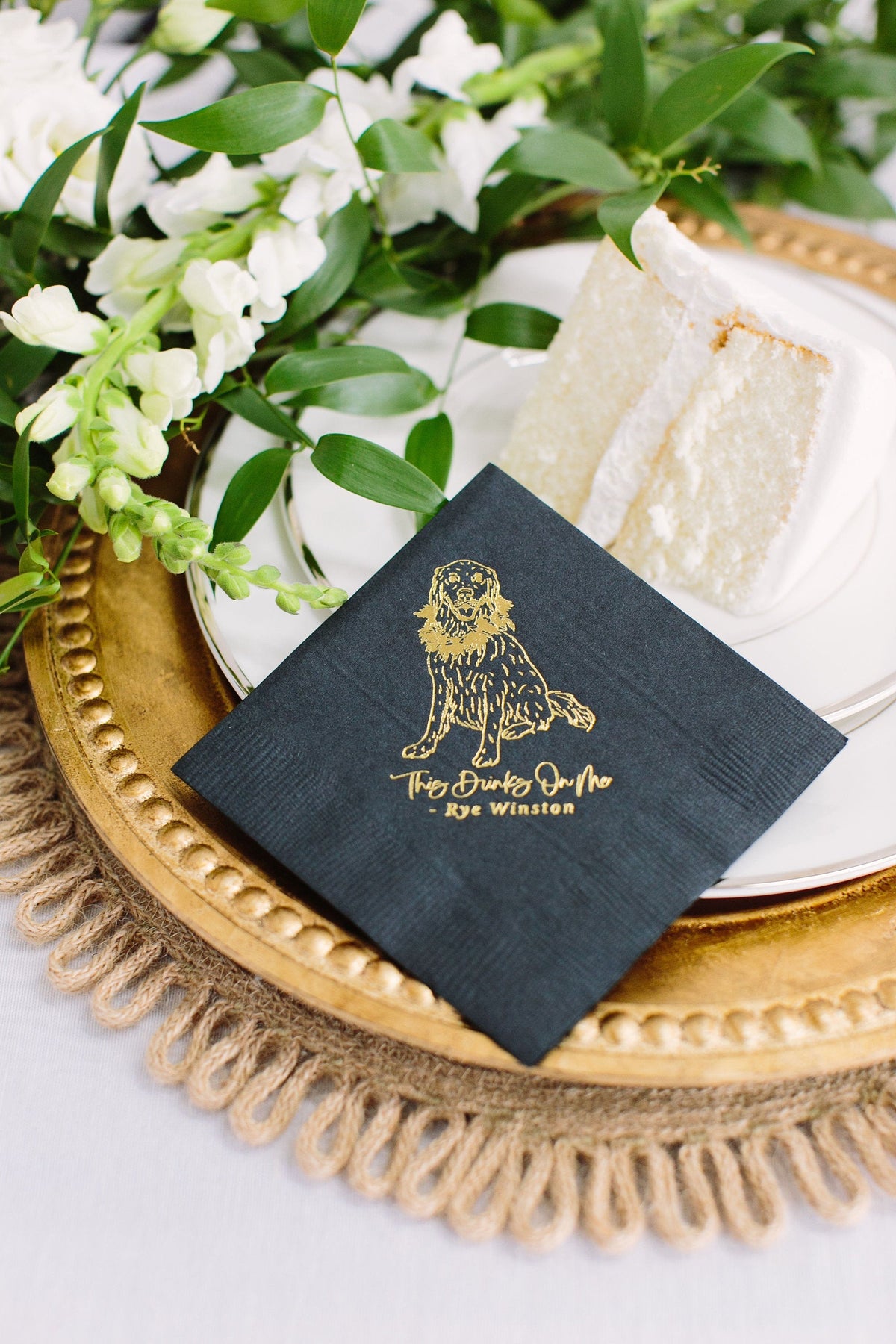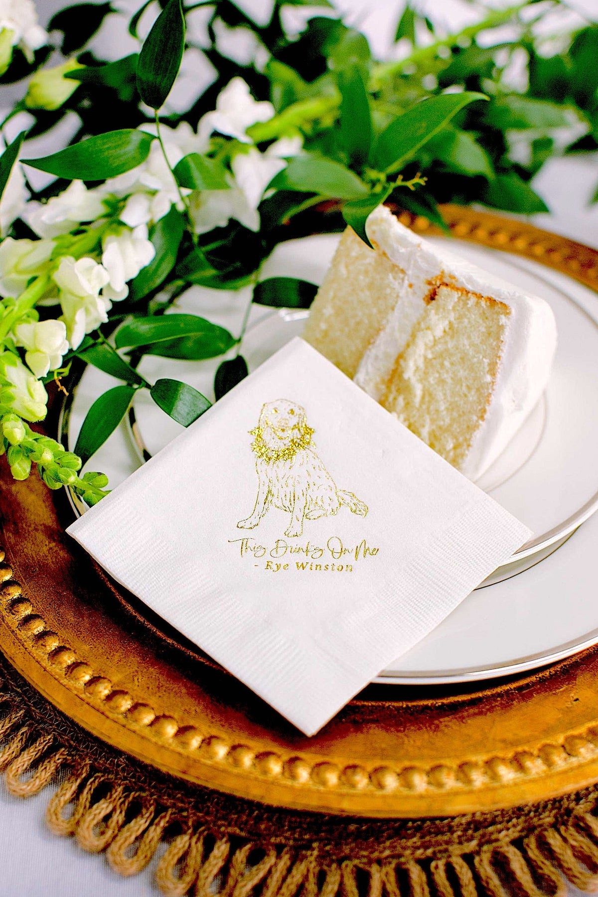 You Can’t Have a Pet of Honor Without Making It Portrait Official and our Gorgeous, 3ply Cocktail Napkins with a hand drawn pet portrait from Sip Hip Hooray is the perfect touch!!